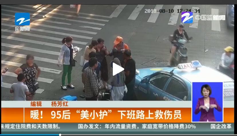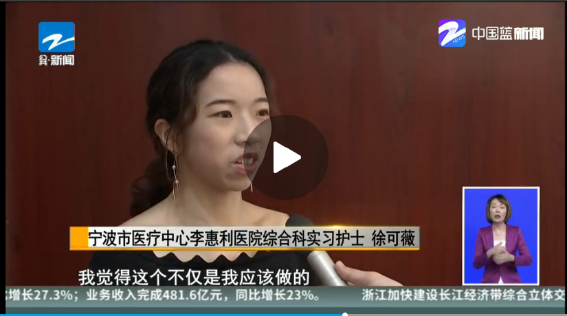 8月10日下午5点多钟,我院2015级中外班学生、在宁波医疗中心李惠利医院实习的95后“美小护”徐可薇在下班途中救治了一名大量出血的伤员,并一直跟上救护车,护着送到医院之后才离开。她的事迹受到浙江卫视公共新闻频道、宁波电视台等争相报道。