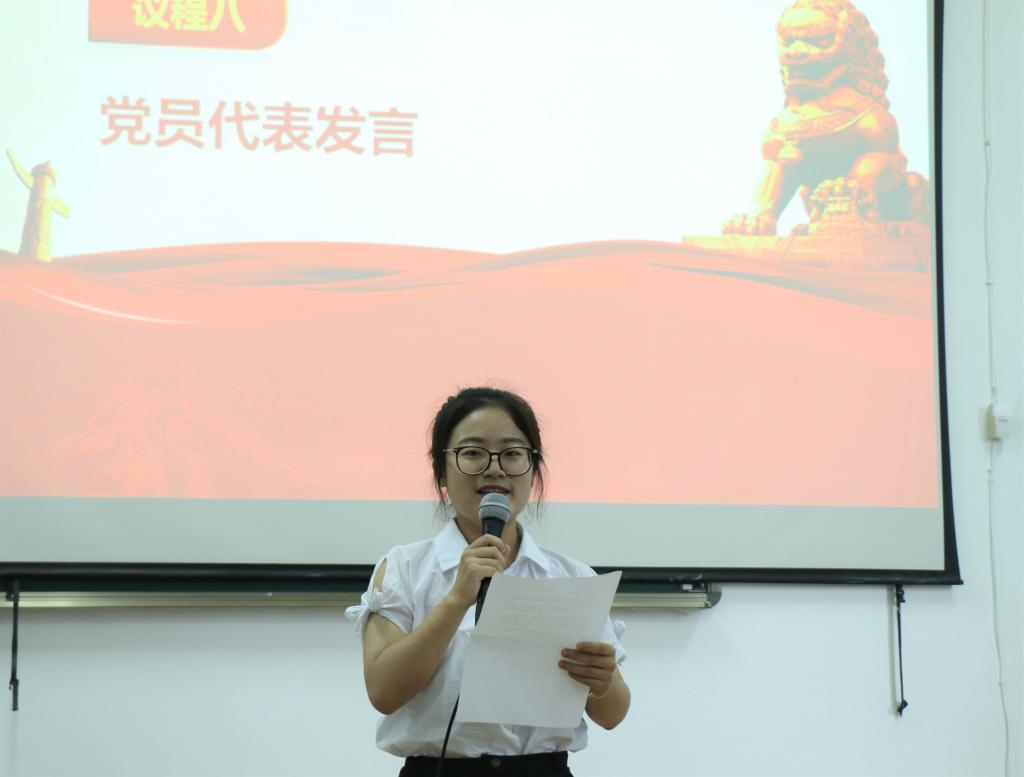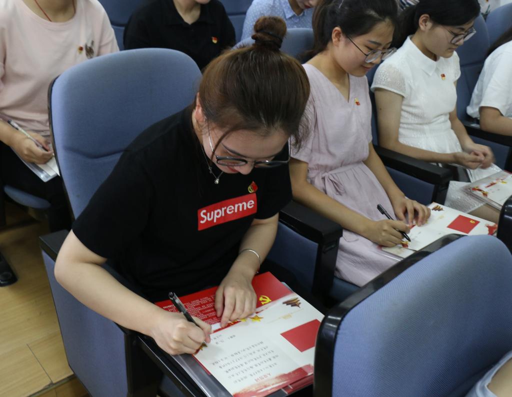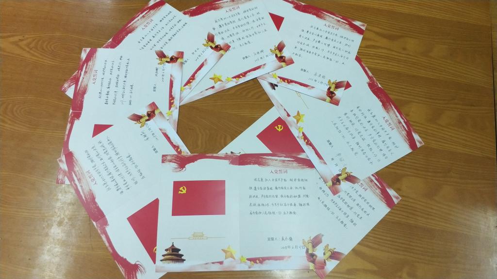 观看《入党誓词》歌曲视频和入党誓词宣誓更将现场的气氛点燃。随后,举行了“诵写誓词、从心入党”现场签字仪式,新一批党员郑重地在亲笔书写的入党誓词上签下自己的名字,从心入党,他们将在未来以实际行动完成对党的承诺,展现新时代的党员风采。“请党组织以实践考验我。”党员代表以坚定不移的语调述说了新一代党员的心声,并表达了在日后活动中践行党的工作准则,时刻接受考验的决心。其后,全体党员一同学习了一位老党员——中国核潜艇之父黄旭华一辈子隐姓埋名献身党的事业的感人事迹,新旧传承,党的精神感动着在场每一个人,也坚定了新党员为人民服务的信念。