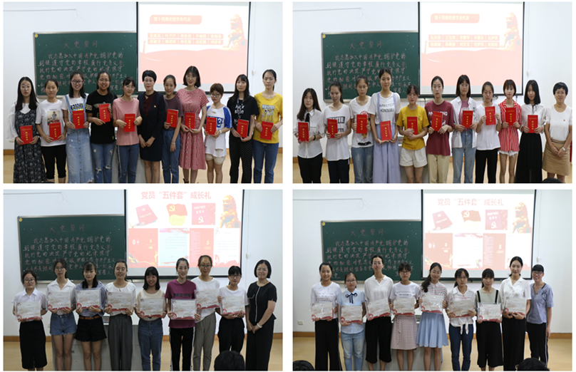 活动在庄严的国歌声中拉开帷幕。国歌毕,《七一献诗》紧跟其后,声情并茂的朗诵里,有嘉兴南湖的智慧萌芽,有井冈山上的松柏翠柳,有漫漫长征的坚韧热血,有开国大典的吐气扬眉,更有新时代的全新气象和光辉的未来,现场气氛昂扬。36名预备党员每人收到了一份专属的党员“成长礼”五件套——党费交纳证、党章、党徽、亲笔书写的入党誓词、入党通知书。这代表着他们正式成为党的一份子,这份礼物不仅饱含着党对青年学子的殷切希望,更意味着新时代党员肩负的时代重任。