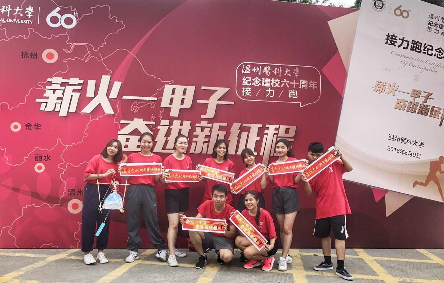 白衣天使齐接力,南丁格尔精神传;一交一接展风采,共庆建校六十年。6月9日上午,taptap点点官网入口201名师生代表和9位来自泰国东方大学taptap点点官网入口的师生满怀激情,参加了纪念建校60周年接力跑,表达对学校甲子华诞的深深祝福。