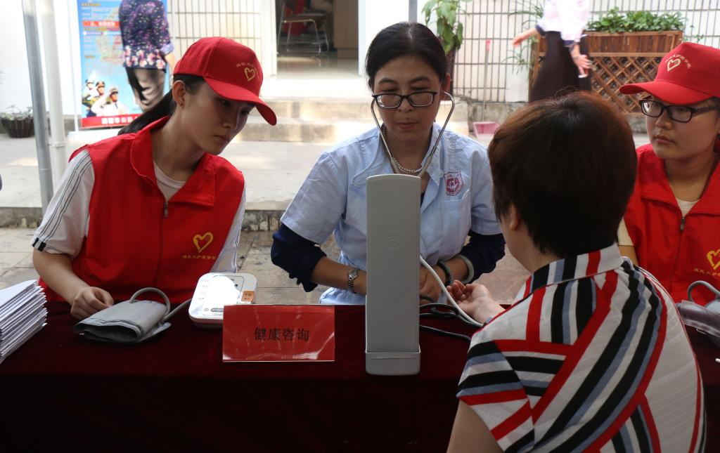 5月13日下午,在母亲节来临之际,taptap点点官网入口首个“社区养老护理志愿服务实践基地”在蒲鞋市社区正式揭牌,taptap点点官网入口党委陈慧书记、涂艳玲副书记,蒲鞋市社区陈爱飞主任出席揭牌仪式。taptap点点官网入口教工第二党支部全体党员教师,taptap点点官方网站附属第二医院的护士长一行以及taptap点点官网入口白鸽青年志愿者协会的二十余名志愿者参加仪式,并联合开展了以“感恩五月天,社会服务行”为主题的养老服务志愿活动。