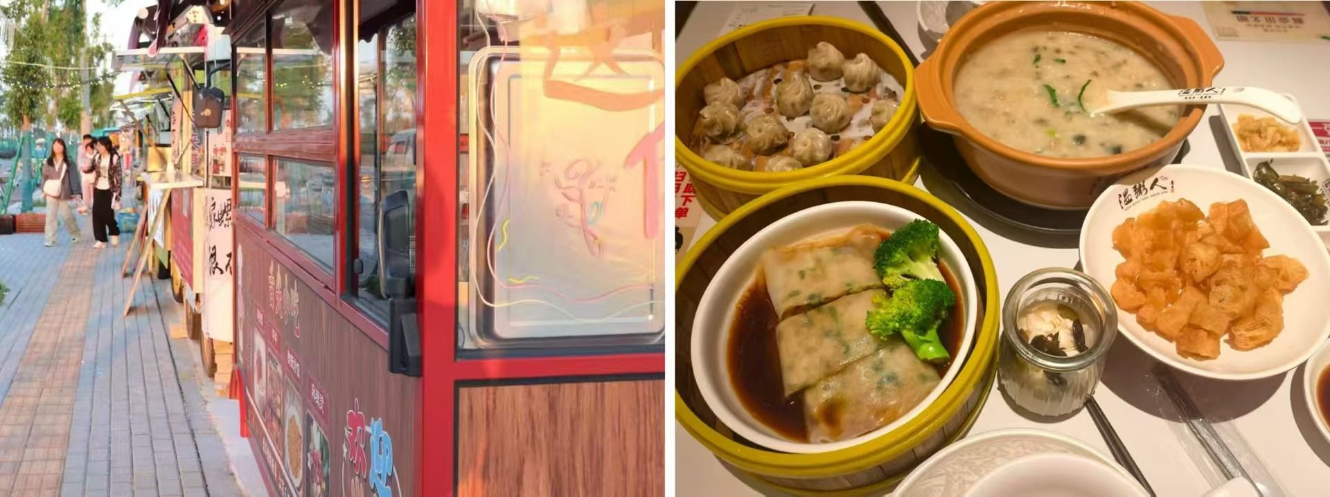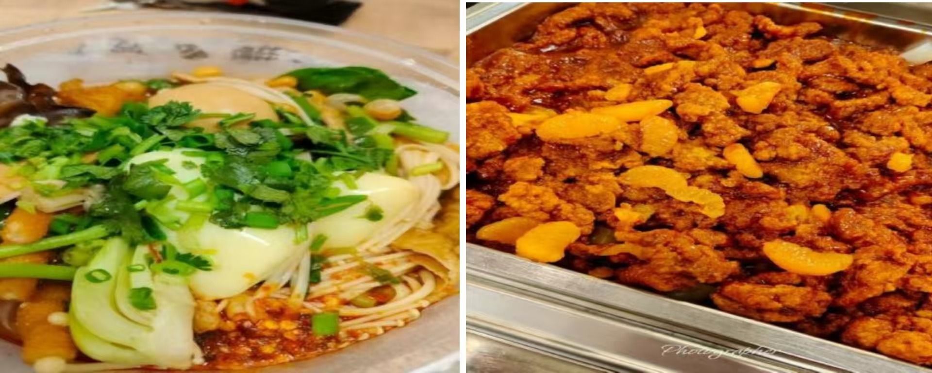 食堂里,各种风味的美食琳琅满目,任你挑选;