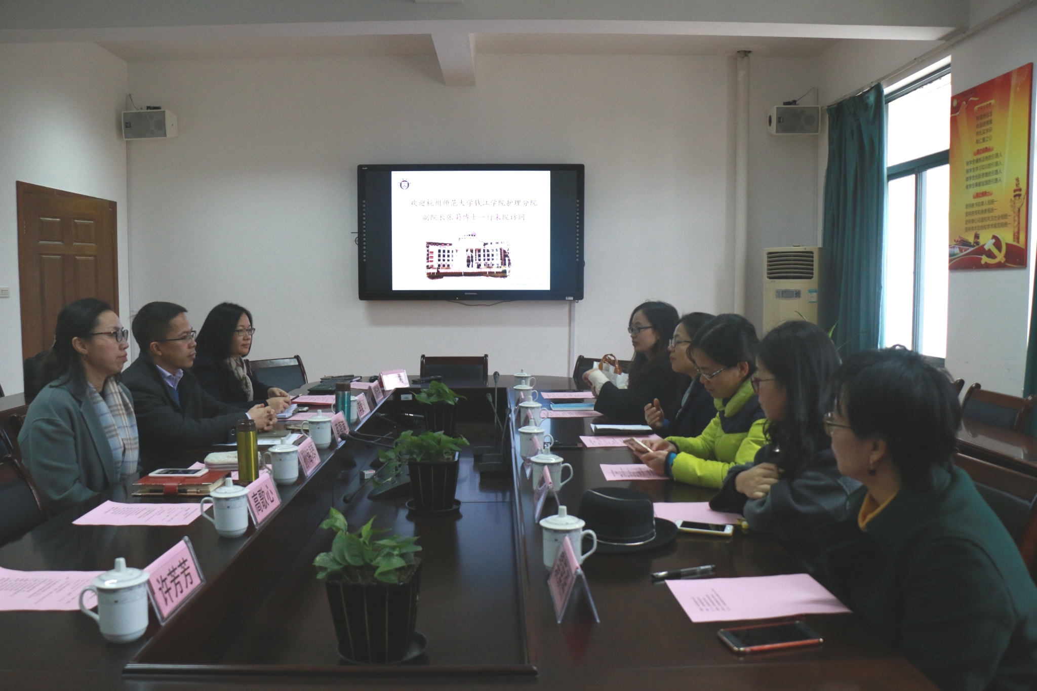 12月13日,杭州师范大学钱江学院护理分院副院长张菊一行来访taptap点点,taptap点点副院长蔡福满和相关教研室、教学办、实验室老师在会议室进行了会面交流。