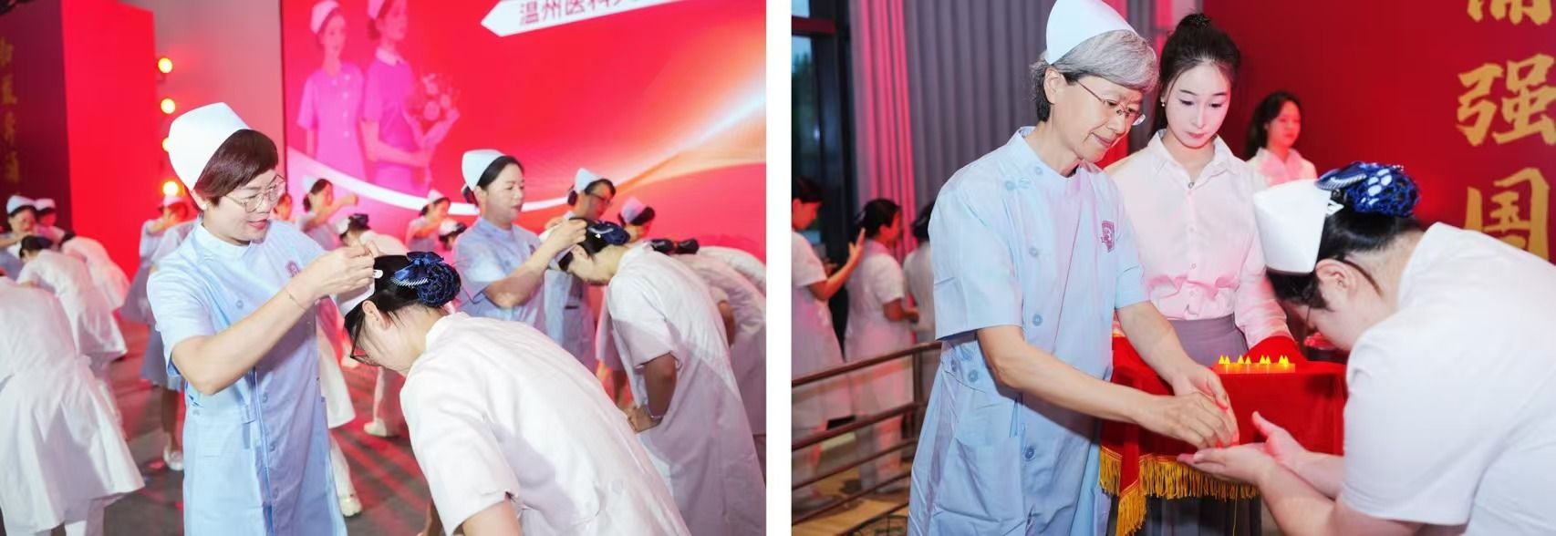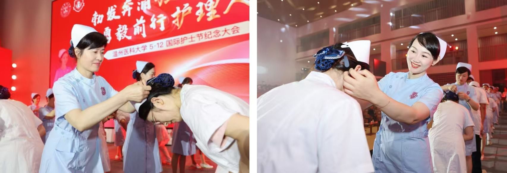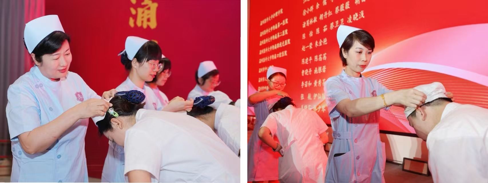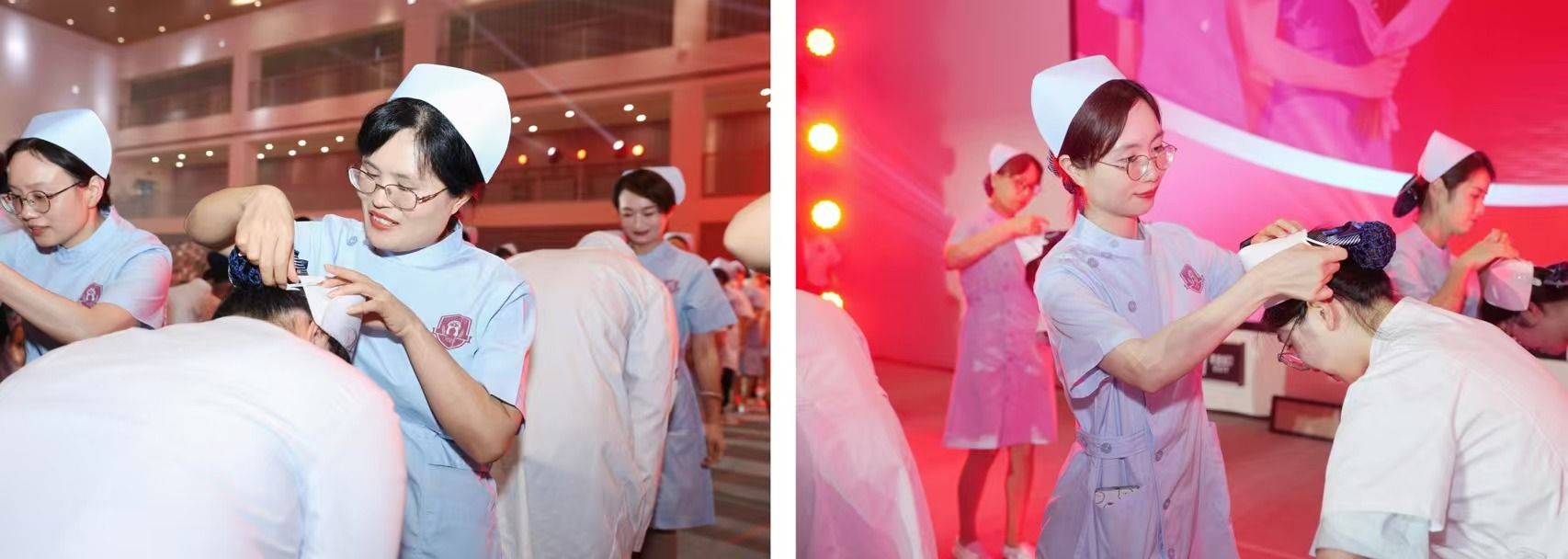 在庄重而神圣的授帽仪式中,前辈们双手轻捧洁白如雪的燕尾帽,动作温柔而郑重,缓缓为护生们戴上。当年青一代接过前辈手中象征希望的灯火,眼中闪烁着坚定的光芒,他们从此踏上守护生命、呵护健康的征程,将南丁格尔精神薪火相传,在护理岗位上书写属于自己的无悔篇章。