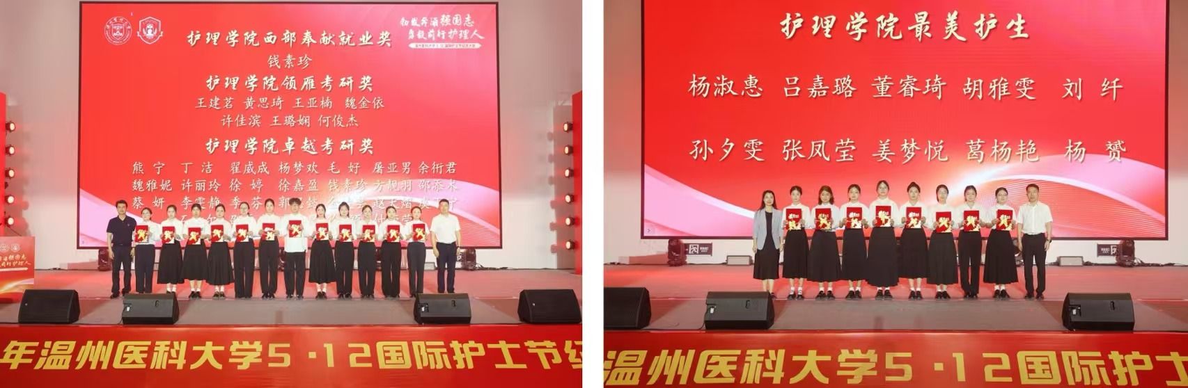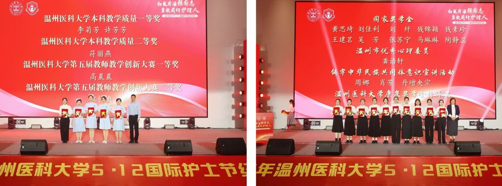 大会还对2024年国家社会科学基金项目立项者、全国高等护理教育院校青年教师授课竞赛获奖者、国家奖学金、温州市优秀心理委员等18项师生荣誉进行表彰,通过礼赞这批奋勇争先、智创未来的师生代表,更好激励新时代的护理人继承和发扬南丁格尔精神,让护理的光辉照耀每一处需要我们的地方。