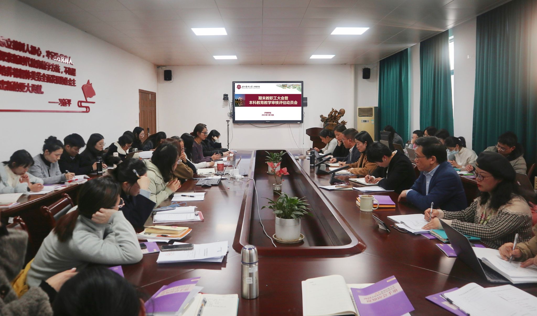 1月10日,学院在7C306会议室召开期末教职工大会暨本科教育教学审核评估动员会,全体教职工参会。会议由党委书记王敏主持。