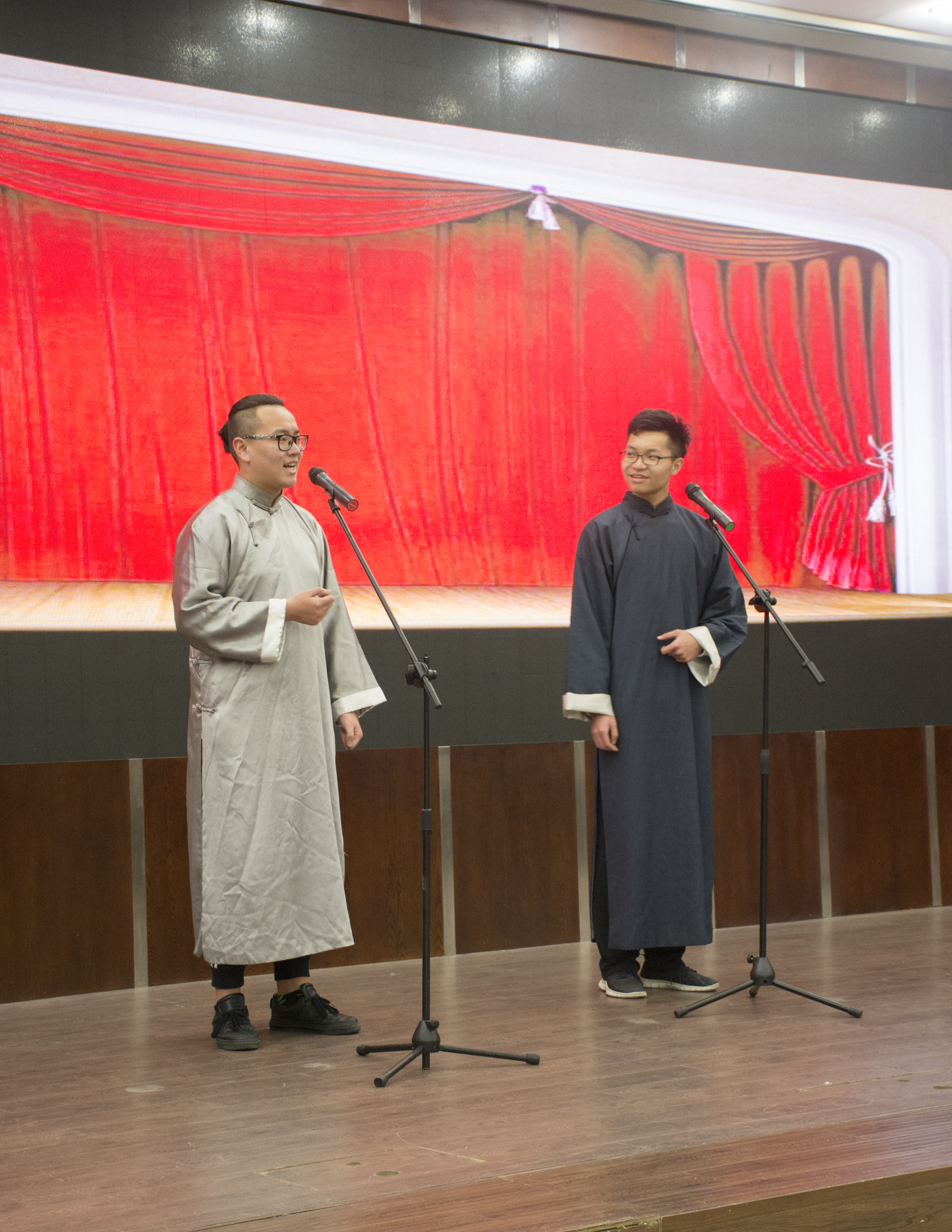 “雅”篇风趣。赵航枫、沈磊两位同学带来的相声《满腹经纶》,将生活趣事和经典成语串联在一起组成一个个诙谐的小故事,让台下的观众们不仅收获了欢乐,也感受到了相声的独特魅力所在。