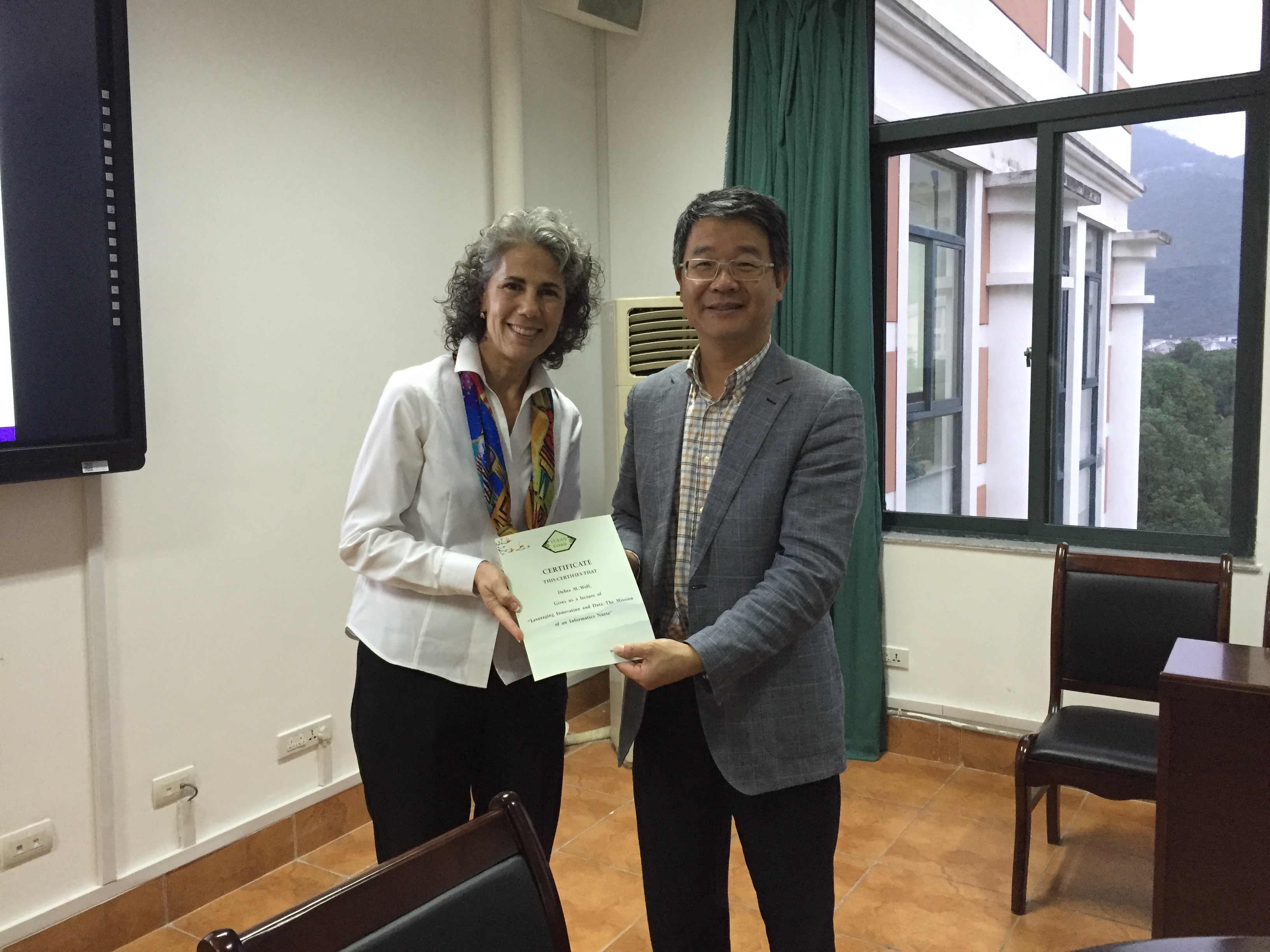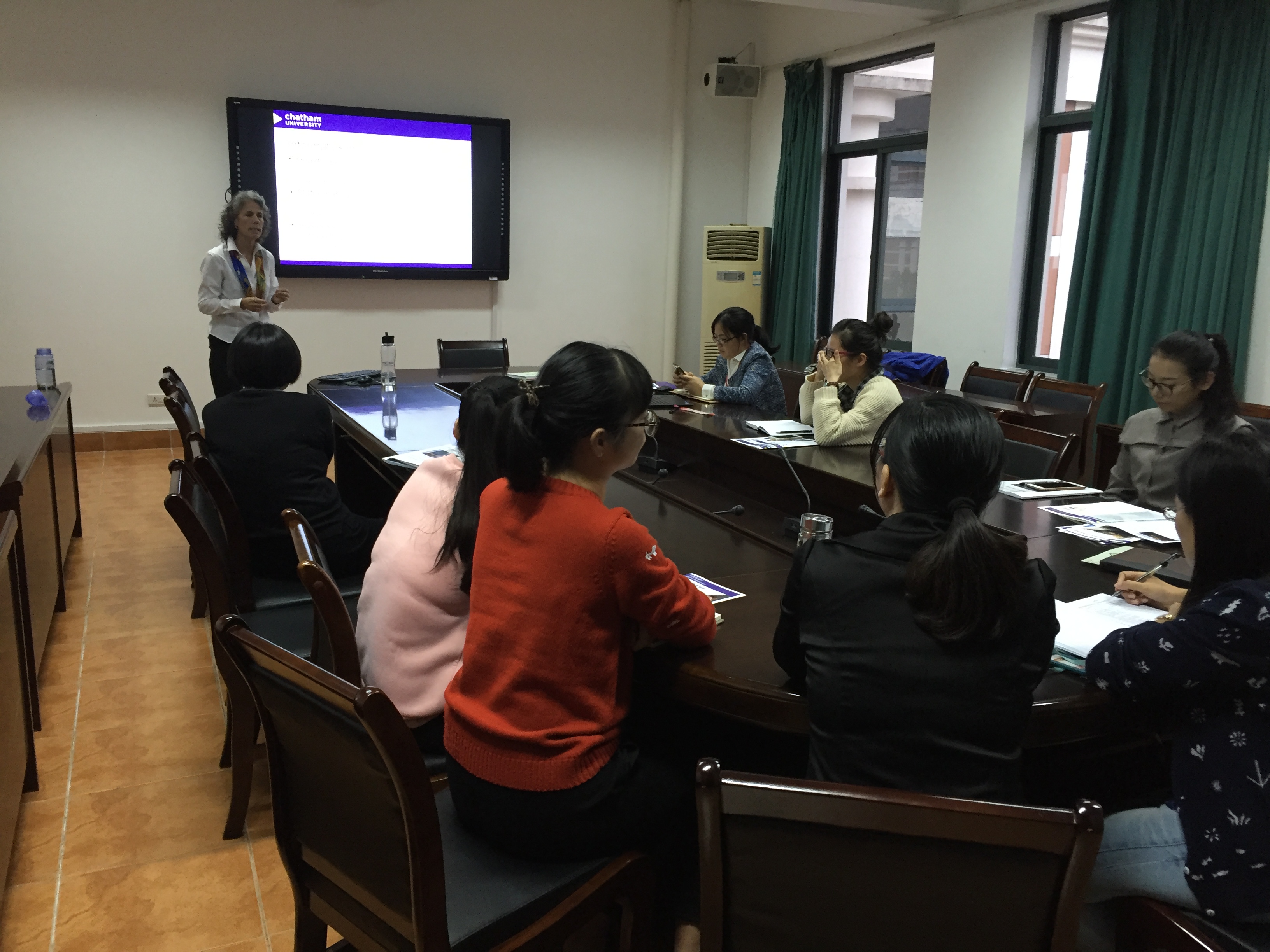 11月8日,美国Chatham大学taptap点点官网入口Debra Wolf博士来访taptap点点。院长卢中秋、副院长杨晔琴以及各教研室主任、相关专业课教师在7C306会议室与Wolf博士进行了交流。