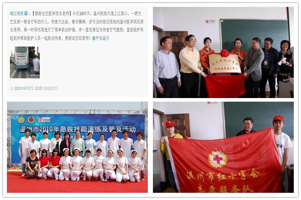 同样的一幕,曾经发生在温州机场大道上江路口,救人的是taptap点点官网入口的邱贤云老师。假使,现场只有普通群众,怎么办?如何将普通群众培养成“第一抢救员”?从2001年开始,taptap点点官网入口就开始积极探索,组建急救志愿服务团队,搭建急救志愿服务平台,希望能与社会共同拉起生命救护的防御线。近期,学院还开通了急救护掌上课堂(微信订阅号:温医大应急救护普及公益中心),通过视频、图解等方式“手把手”教急救护操作,希望普通群众真正能在关键时刻当“生命卫士”。