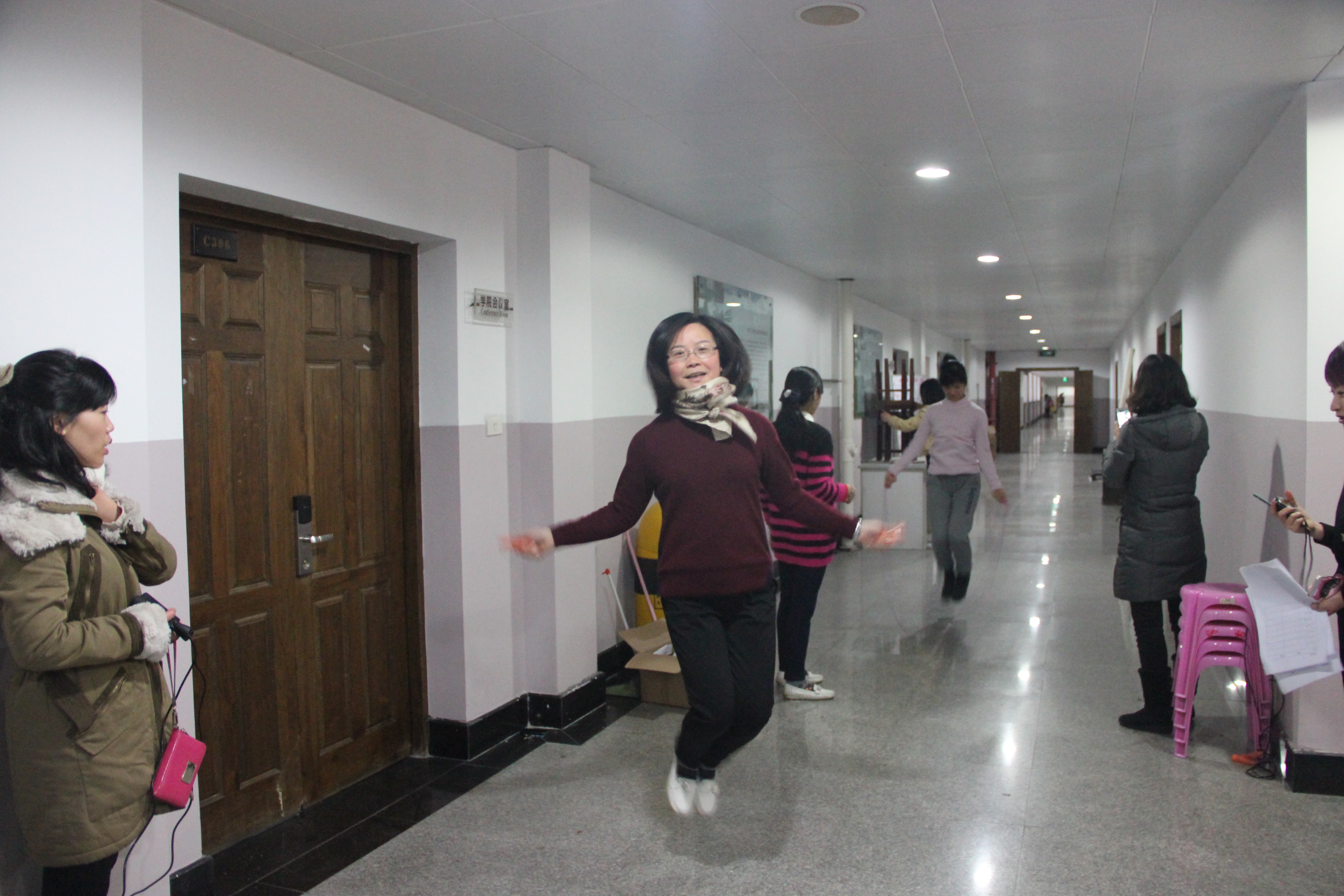 运动会上,学院工会主席余昌妹老师作了简短的讲话,对学院女教工表达了节日的祝贺。趣味运动会共设跳绳、飞镖、兵乓球、踢毽子、抢凳子等五个项目,经过开心、激烈的角逐,最后每项都产生了一等奖1名、二等奖2名、三等奖3名以及鼓励奖2名的可喜成绩。