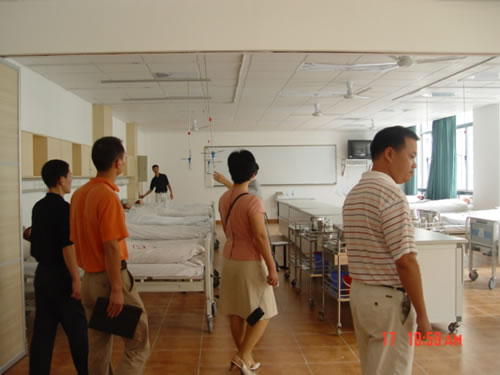 陈行汉副书记向客人们介绍了学校和学院的办学历史,护理专业的发展情况。学院办公室王世泽老师向客人们详细汇报了学院的招生就业、学科建设、人才培养、实验室建设、教学管理和实习基地建设等有关方面情况。朱卫民院长也向我们简单介绍了广西医科大学taptap点点官网入口的教学、科研和人才培养情况。随后客人们参观了学院护理学基础、急救护理学、外科护理学、妇儿实验室和护理示教室,他们详细了解了实验室建设规划、布局等情况,对taptap点点的实验室建设和教学管理工作大加赞赏。