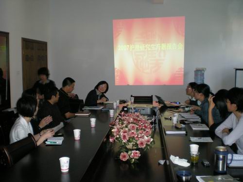 10月26日下午在学院会议室隆重举行2007年温州医学院护理学硕士开题报告,这次共有3名研究生进行了开题报告:许虹波报告的题目为《癌症化疗患者癌症相关性疲劳及对生活质量影响的研究》;王玉玲报告的题目为《台风灾区灾民的灾害认知和行为特征的研究》;杨晔琴报告的题目是《PGE1对大鼠压疮皮损中NO及iNOS含量的影响》。