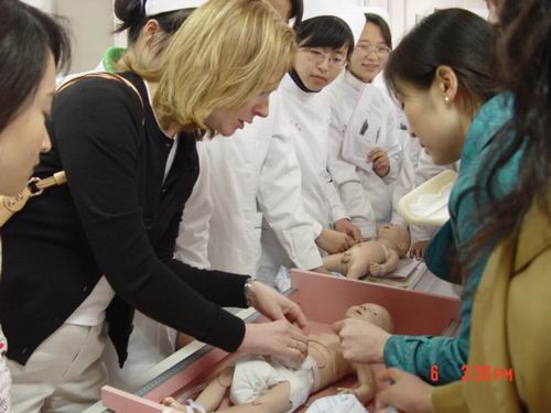 近日,美国西北大学的两位在附二医新生儿从事护理工作的志愿者,在附二护理部张春美老师和时亚平老师的带领下参观了taptap点点官网入口,期间,在学院会议室,taptap点点王一婷老师代表学院向两位客人介绍了学院的发展史和学院总体的情况,随后,taptap点点官网入口副院长姜丽萍在百忙之中接见了两位远到而来的客人,并为志愿者颁发纪念品..最后两位洋护士还兴致勃勃地参观了taptap点点官网入口试验室,并饶有兴致地参与了学生实验课,两位洋护士对温州医学院taptap点点官网入口的发展规模和理念表示惊讶,同时对taptap点点的先进的试验设施赞叹不已,纷纷表示希望今后有机会来taptap点点官网入口做一名护理教学工作的志愿者.