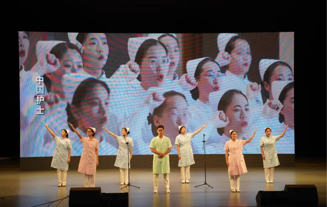 齐唱《中国护士之歌》环节,全体师生起立共唱。“中国护士,大爱无疆,用奉献浇灌生命,让生命永远绽放……”激昂的旋律与深情的歌词令人动容,歌声中饱含对护理事业的热爱与憧憬,彰显出学子们的坚定信念。
