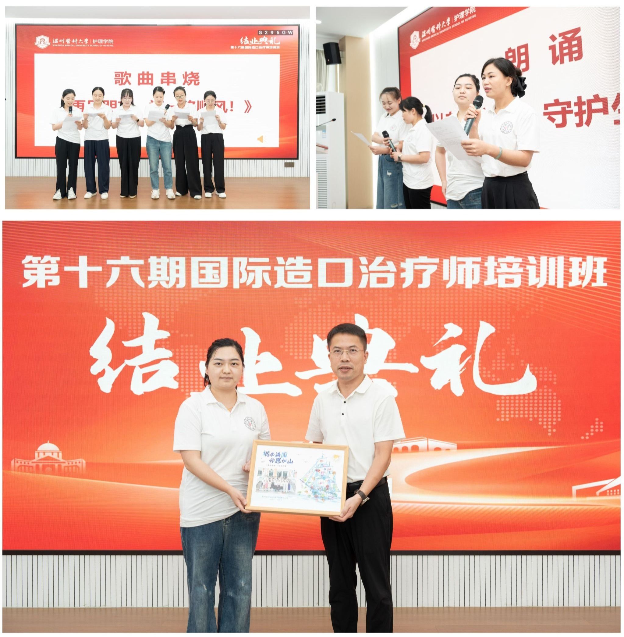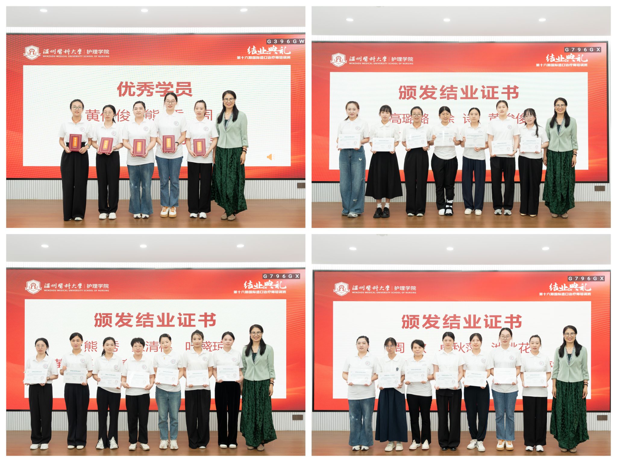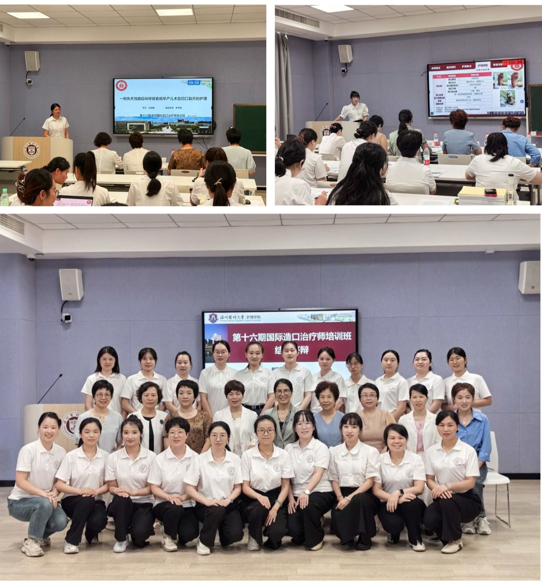 9 月 28 日下午,温州国际造口治疗师学校第十六期培训班结业典礼在taptap点点官方网站茶山校区7D203学术报告厅顺利举办。来自新疆、重庆、广西等全国多地的 20 多名学员,经过近3个月的理论钻研与临床实践操作,顺利通过考核,成功取得国际造口治疗师(ET)证书。
