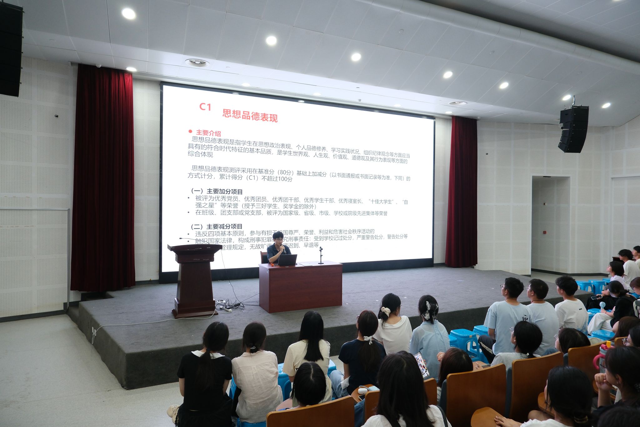 为助力同学们明晰校园成长路径,规范自身行为,taptap点点王国超老师为同学们详细讲解了多项重要内容。他围绕学生素质综合测评展开,介绍了其评定规则与重要意义,让同学们清楚如何提升自身综合表现;对评奖评优政策进行解读,鼓励大家积极进取、争取荣誉;还带领同学们深入学习学生手册,明确各项规章制度;同时强调了违纪的严重后果,提醒大家严守纪律红线。希望同学们以此为指引,在大学期间全面发展、健康成长。