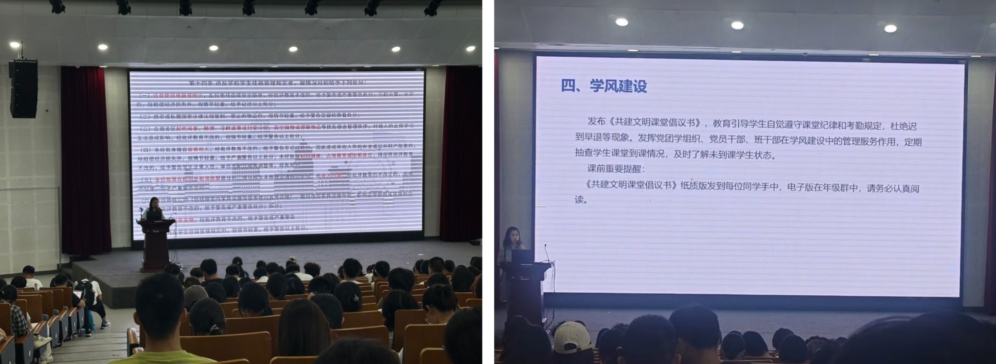 学院以学风建设主题班会为载体,构建起 “学院统筹、班级执行、学生参与” 的三级实践体系。辅导员针对新生开展始业教育,内容涵盖学生手册学习、评奖评优政策宣讲及 “榜样示范引领” 等;通过召开学风建设主题班会,系统解读学业预警机制、综测加分细则等核心制度,覆盖全院84个班级;邀请优秀学生分享成长经验,激发学生内在学习动力;围绕 “考研升学规划”“专业学习难点突破”“职业发展路径探索” 等学生关注的话题,为学生开设 “考研经验交流会”,邀请优秀学子分享院校选择策略与备考安排。
