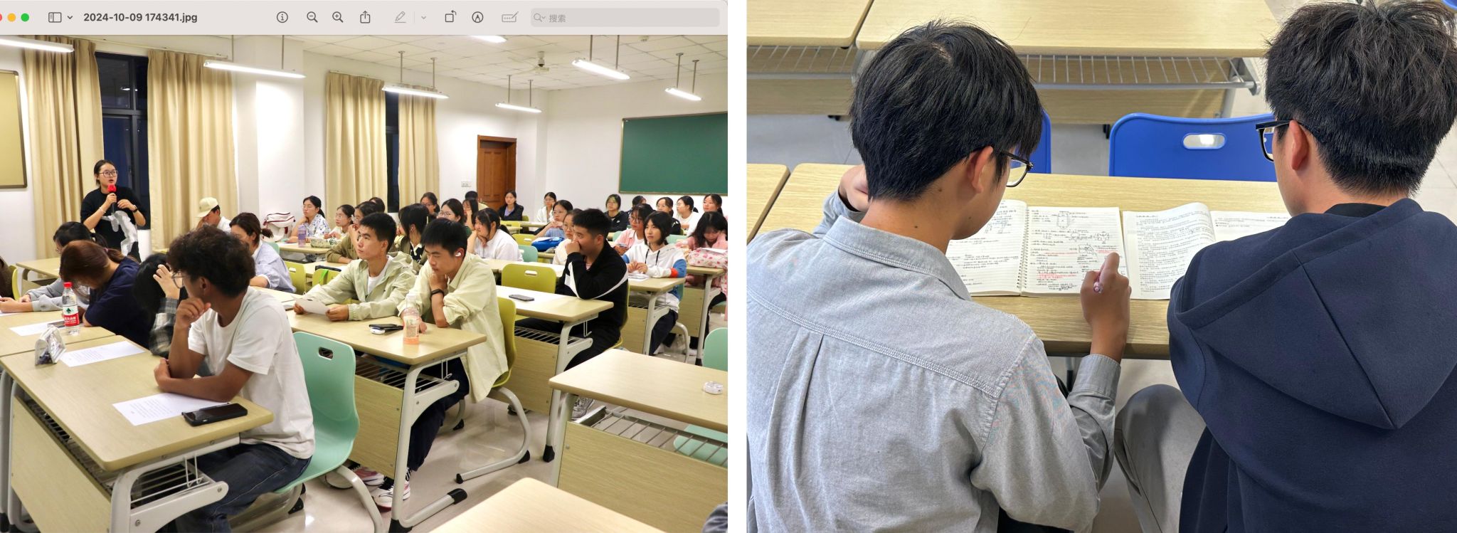 学院将课堂作为学风建设的核心阵地,推行 “考勤严管 + 巡课细查” 的双轨机制。一方面,严格落实考勤制度,由各班班干部负责点名,压实班级考勤责任,引导学生养成按时到课的良好习惯;另一方面,辅导员深入班级、寝室和课堂,观察学生学习上课状态,及时提醒并纠正问题,与教师协同配合,共同维护课堂秩序。本学期,课堂纪律井然有序,学生学习氛围浓郁。