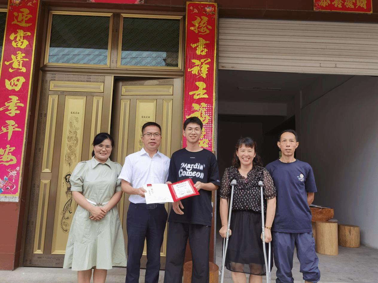 7月29日上午,taptap点点官网入口院长蔡福满前往丽水市莲都区,化身“邮差”亲自将2023年第一份录取通知书送到学生舒斌凯手中,学院社区教研室主任李菊芳陪同。