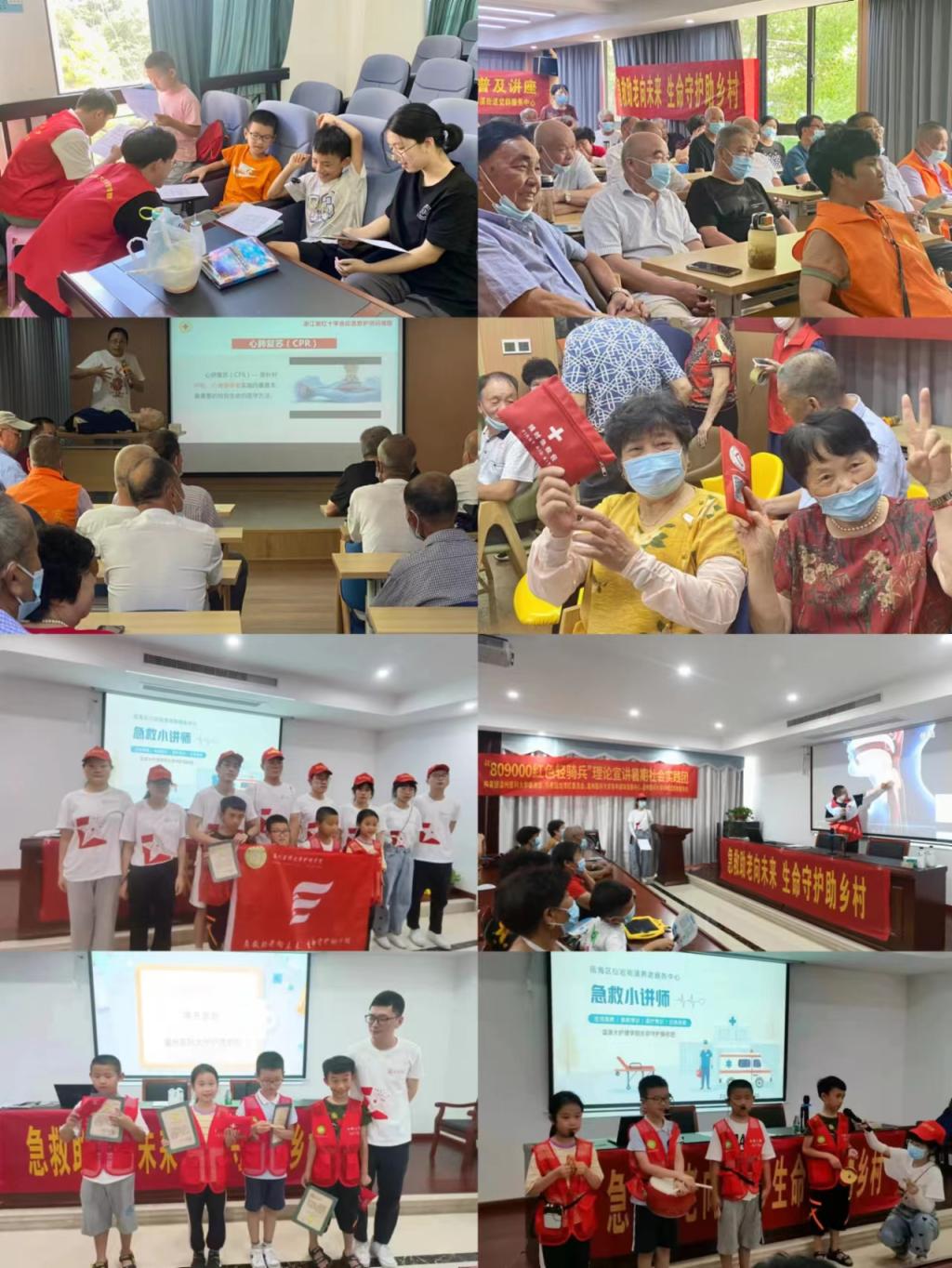 在温州市地区,首创开展“急救小讲师”活动,面向大学城附属学校小学生选拔与培养有潜力的小朋友们,打造了一支小小急救讲师团,为小学生急救科普留下一支带不走的队伍。经过前期多次培训,急救小讲师们、实践团成员携手温州市红十字会师资于 6 月 30 日、7 月2日分别在郭溪街道党群服务中心、仙岩街道党群服务中心进行了两次急救知识普及。此外,实践团成员联合泰顺县红十字会与当地实践成员,在泰顺县三魁镇党群服务中心进行急救知识普及,三次急救普及累计宣讲对象200余人次,并获得较好反响。