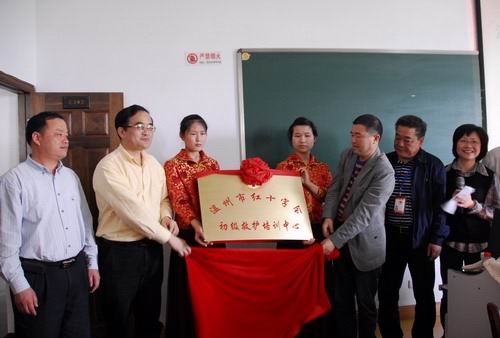 如果老人在家中突发心肌梗塞,该怎么办?如果在灾害现场面对待救伤患又如何处理?4月15日上午,温州市红十字会救护培训中心在我校挂牌成立,将充分利用我校taptap点点官网入口资源,面向社会各界有兴趣学习急救技能的人士进行专业培训。